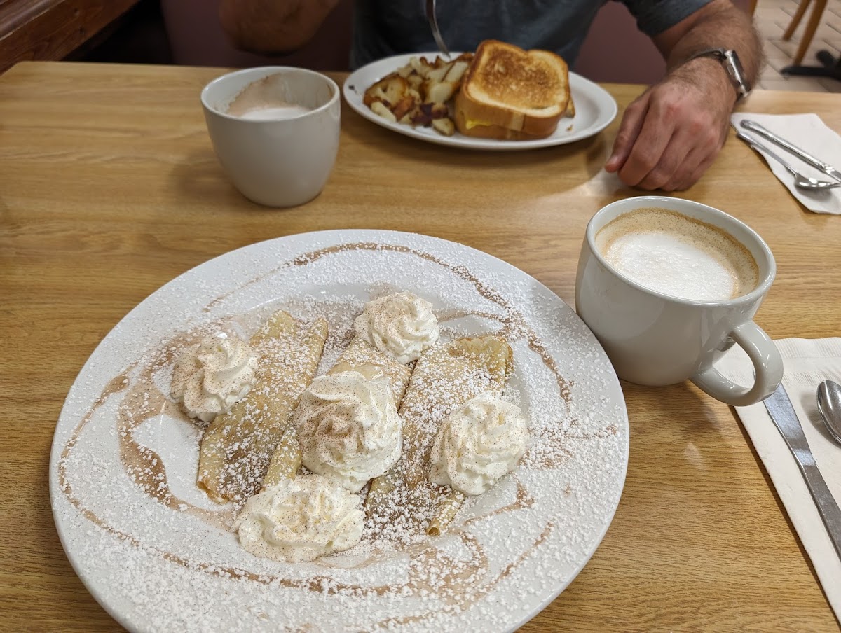 I enjoyed a wonderful meal with my father here. I had the pumpkin crepes with a side of bacon. It was delicious!! My server was wonderful and was ready with refills for our coffee and tea as well. We had a great experience!